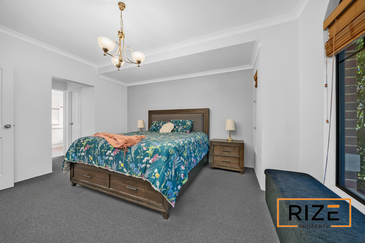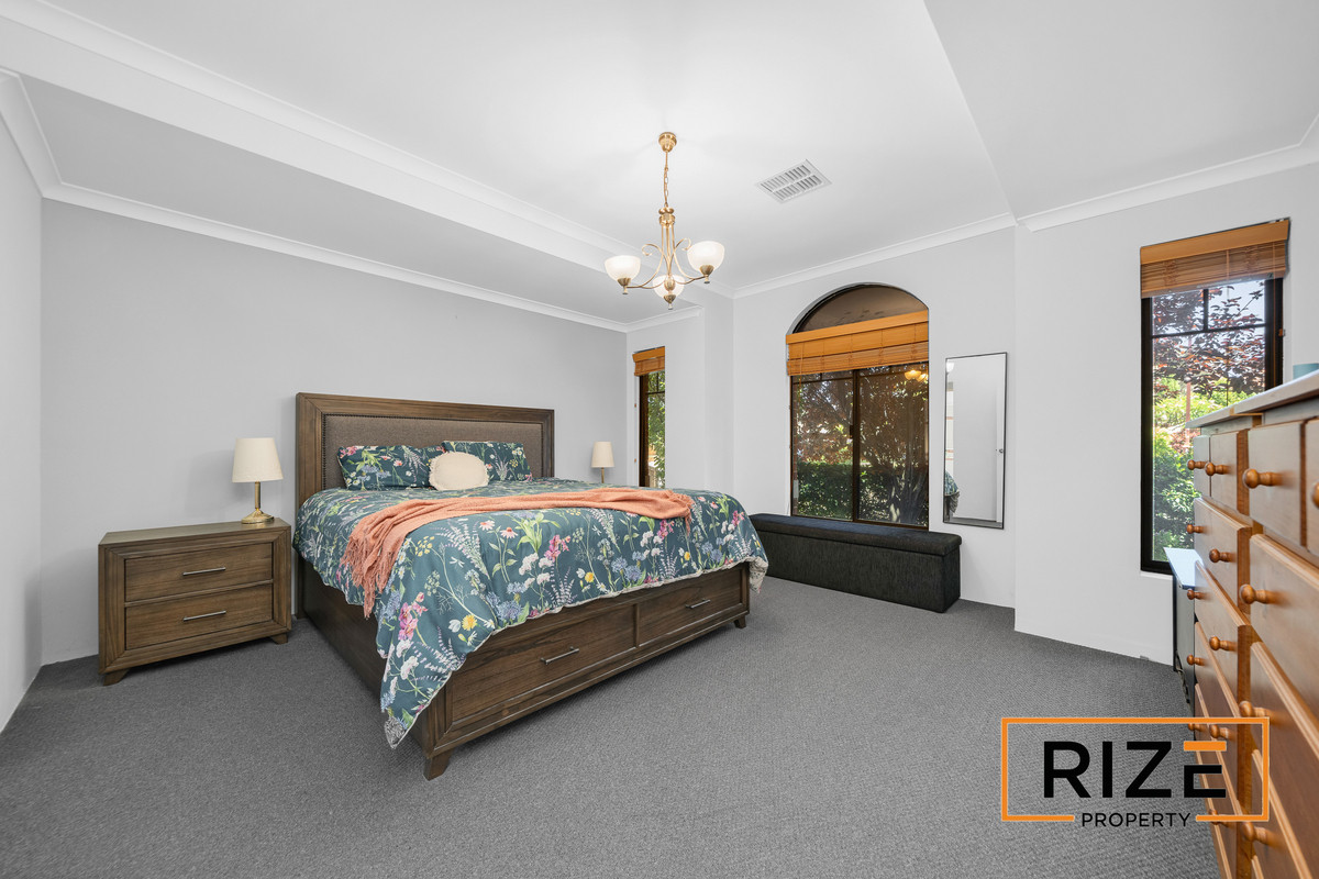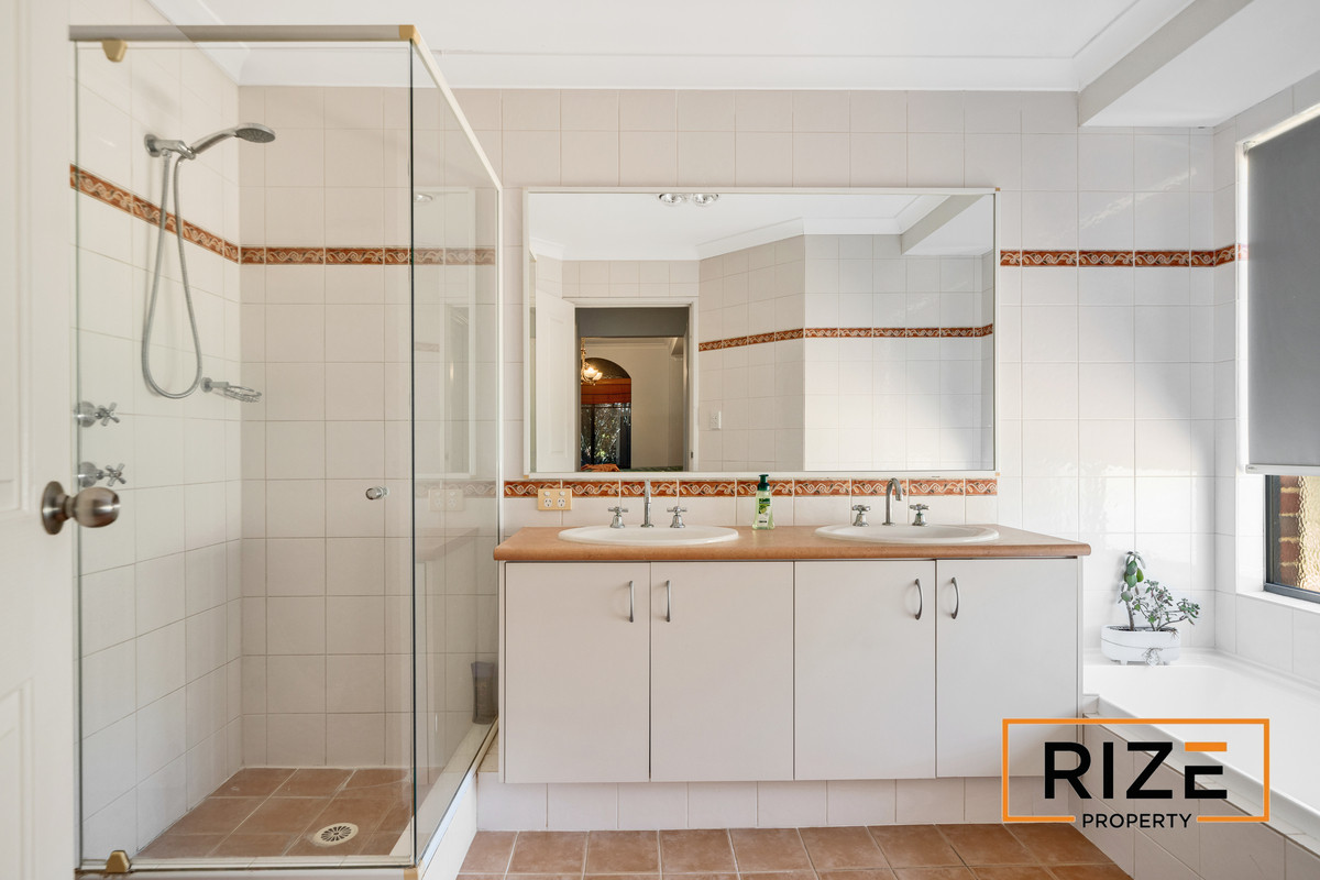 The master bedroom is impressive, featuring high ceilings and arched windows, his and hers walk-in robes, and a well-appointed ensuite. Bedrooms two, three and four are all generous double-sized rooms.
