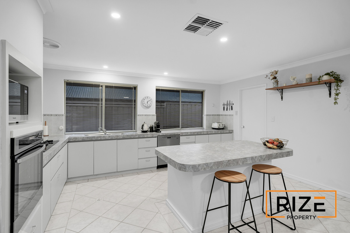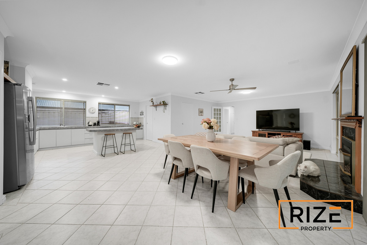 From the outset, the home impresses with a wide driveway, side access, double garage, and welcoming portico entry. Inside, significant investment in fresh paint and modern lighting has created a clean, light-filled canvas ready to move straight in and enjoy. The huge open-plan living area forms the heart of the home, seamlessly connecting the lounge, dining, and kitchen. The kitchen is expansive and highly functional, featuring a massive breakfast island and oversized walk-in pantry.